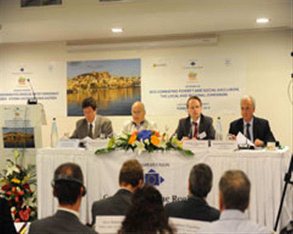 Στην σημερινή Ευρώπη, φτωχός είναι αυτός που ζεί με λιγότερο από το 60 % του μέσου εθνικού εισοδήματος, αλλά η αλήθεια είναι ότι ο ορισμός της φτώχειας έχει αποκλίσεις ανάλογα με την πολιτική διάσταση που θέλουμε να δώσουμε. Το ουσιαστικό είναι ότι η φτώχεια και ο κοινωνικός αποκλεισμός, αποτελούν την καθημερινότητα εκατομμυρίων συνανθρώπων μας σε όλη την Ευρώπη, 80 εκατομμυρίων στην ακρίβεια από τους 500 εκατομμύρια κατοίκους της Ε.Ε., 80 εκατομμύρια άνθρωποι για τους οποίους θα ήταν τουλάχιστον αφελές να ισχυριστούμε ότι έχουν τις ίδιες ευκαιρίες με τους άλλους. Αυτή είναι η πραγματικότητα, και είναι μία πραγματικότητα που πήρε νέες διαστάσεις την τελευταία 20ετία, καθώς με την σταδιακή εδραίωση της παγκοσμιοποίησης βλέπουμε ολοένα και περισσότερα κοινωνικά στρώματα να τίθενται στο περιθώριο. Οι κοινωνίες μας δεν ήταν προφανώς έτοιμες να βρούν λύσεις στις αναδυόμενες οικονομικές τάσεις, τα μικρομεσαία εισοδήματα βρέθηκαν πρακτικά ανυπεράσπιστα και αυτά ήταν που επλήγησαν και συνεχίζουν να υποφέρουν από την επέλαση της παγκοσμιοποίησης. Οι όποιες λύσεις δεν κατέληξαν σε ένα μείγμα πολιτικής αντάξιο των περιστάσεων. Αν πάρουμε για παράδειγμα τις πολιτικές ενίσχυσης της απασχόλησης, διαπιστώνουμε ότι πολλές θέσεις εργασίας απλά δεν αποτελούν από μόνες τους το διαβατήριο για την έξοδο από μία κατάσταση ένδειας, καθότι δεν έχουν εκείνα τα ποιοτικά χαρακτηριστικά που μπορούν να συνεισφέρουν στην κοινωνική ανέλιξη. Η πρόσβαση σε ποιοτικές κοινωνικές υπηρεσίες γίνεται ολοένα και δυσκολότερη, πράγμα που δυσκολεύει προσπάθειες για την κοινωνική ένταξη ευπαθών ομάδων. Ο κίνδυνος να πάρει το φαινόμενο της φτώχειας και του κοινωνικού αποκλεισμού ακόμη μεγαλύτερες διαστάσεις είναι ορατός, καθότι διανύουμε την μεγαλύτερη οικονομική κρίση της μεταπολεμικής περιόδου. Είναι προφανές ότι σήμερα, οποιοσδήποτε από μία λάθος επιλογή ή μία ατυχή συγκυρία, μπορεί να βρεθεί, ευκολότερα από ποτέ άλλοτε, στο περιθώριο της κοινωνίας» και κατέληξε λέγοντας «Το μήνυμα είναι σαφές, το υπαγορεύουν οι καιροί μας, η Ευρώπη ή θα είναι Κοινωνική ή δεν θα είναι. Ως εκ τούτου, θέλουμε να ακούσουμε σήμερα ποια είναι τα μέσα, ποιες είναι οι πολιτικές, που η Ε.Ε. υπολογίζει να χρησιμοποιήσει για να συνδράμει τα Κράτη Μέλη της για την επίτευξη του στόχου της μείωσης της φτώχειας κατά 25%.Θέλω να ακούσω από τον εκπρόσωπο της Ελληνικής Κυβέρνησης πως σκοπεύει να κινηθεί για να αξιοποιήσει τις ευκαιρίες που προσφέρει η συμμετοχή μας στην Ε.Ε. και όταν αναφέρομαι σε ευκαιρίες δεν φωτογραφίζω μόνο τα Χρηματοδοτικά Μέσα. Γιατί ευκαιρία είναι, π.χ. να μαθαίνεις από τις ορθές πρακτικές των Εταίρων σου για αποτελεσματική διαχείριση των οικονομικών και άλλων πόρων. Τέλος, θέλω να ακούσω πως η Αυτοδιοίκηση και οι οργανώσεις της Κοινωνίας των Πολιτών, δίνουν λύσεις στην δύσκολη καθημερινότητα. Ποια είναι τα εργαλεία που χρειάζεται να χρησιμοποιήσουμε για να μπορέσουμε να ανατρέψουμε μία πραγματικότητα που κατά την τρέχουσα συγκυρία αυξάνει τις τάξεις των φτωχών και των κοινωνικά αποκλεισμένων.»