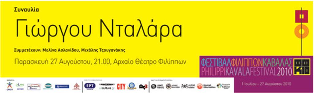 Την Παρασκευή 27 Αυγούστου ο Γιώργος Νταλάρας θα κάνει μια στάση της ευρωπαϊκής μουσικής του περιοδείας. Πρόκειται για τη γνωστή «THE ENCORE TOUR – EUROPE 2010». 25 χρόνια μετά την πρώτη του διεθνή περιοδεία, ο Γιώργος Νταλάρας φέτος ταξίδεψε και πάλι την ελληνική μουσική στους πιο μεγάλους και ξεχωριστούς συναυλιακούς χώρους, στα διασημότερα θέατρα της Ευρώπης. «THE ENCORE TOUR – EUROPE 2010», όπως είναι ο τίτλος του μεγάλου αυτού μουσικού ταξιδιού του Γιώργου Νταλάρα, ήρθε μετά την τελευταία περιοδεία του να συμπεριλάβει μεγάλες επιτυχίες από την αρχή της μουσικής του πορείας, μέχρι την τελευταία δισκογραφική του δουλειά με τίτλο «Γι’ αυτό υπάρχουνε οι φίλοι».