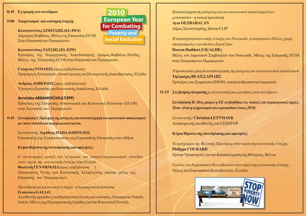 Σεμινάριο: “2010: Καταπολέμηση της φτώχειας και του κοινωνικού αποκλεισμού: η τοπική και περιφερειακή διάσταση”