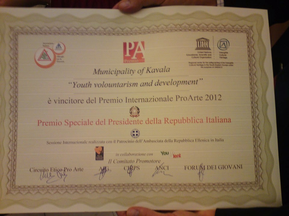 - Πραγματοποιήσαμε φωτογράφηση στις καμάρες με σκοπό το σήμα μας να γίνει πράξη αλλά και την δημιουργία βίντεο που προβλήθηκε στην απονομή του βραβείου “ ProArte 2013” στην Ρώμη.