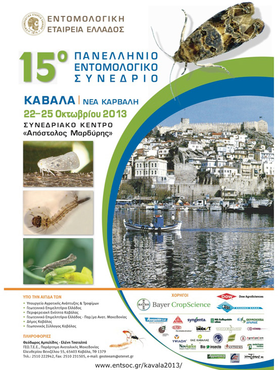 H Εντομολογική Εταιρεία Ελλάδος (Επιστημονικό Σωματείο) διοργανώνει το 15ο Πανελλήνιο Εντομολογικό Συνέδριο στον Εκθεσιακό-Συνεδριακό χώρο «Απόστολος Μαρδύρης» στην Ν. Καρβάλη Καβάλας από 22 έως 25 Οκτωβρίου του 2013. Στο συνέδριο θα παρουσιαστούν πρωτότυπες ερευνητικές εργασίες, που θα καλύπτουν όλους τους κλάδους της βασικής και εφαρμοσμένης έρευνας της Εντομολογίας και Ακαρεολογίας. Επίσης, θα αναπτυχθούν θέματα γενικότερου ενδιαφέροντος πάνω σε σημαντικά προβλήματα Φυτοπροστασίας, Βιολογικής Γεωργίας αλλά και Εναλλακτικών Μεθόδων Καταπολέμησης Φιλικών προς το Περιβάλλον.