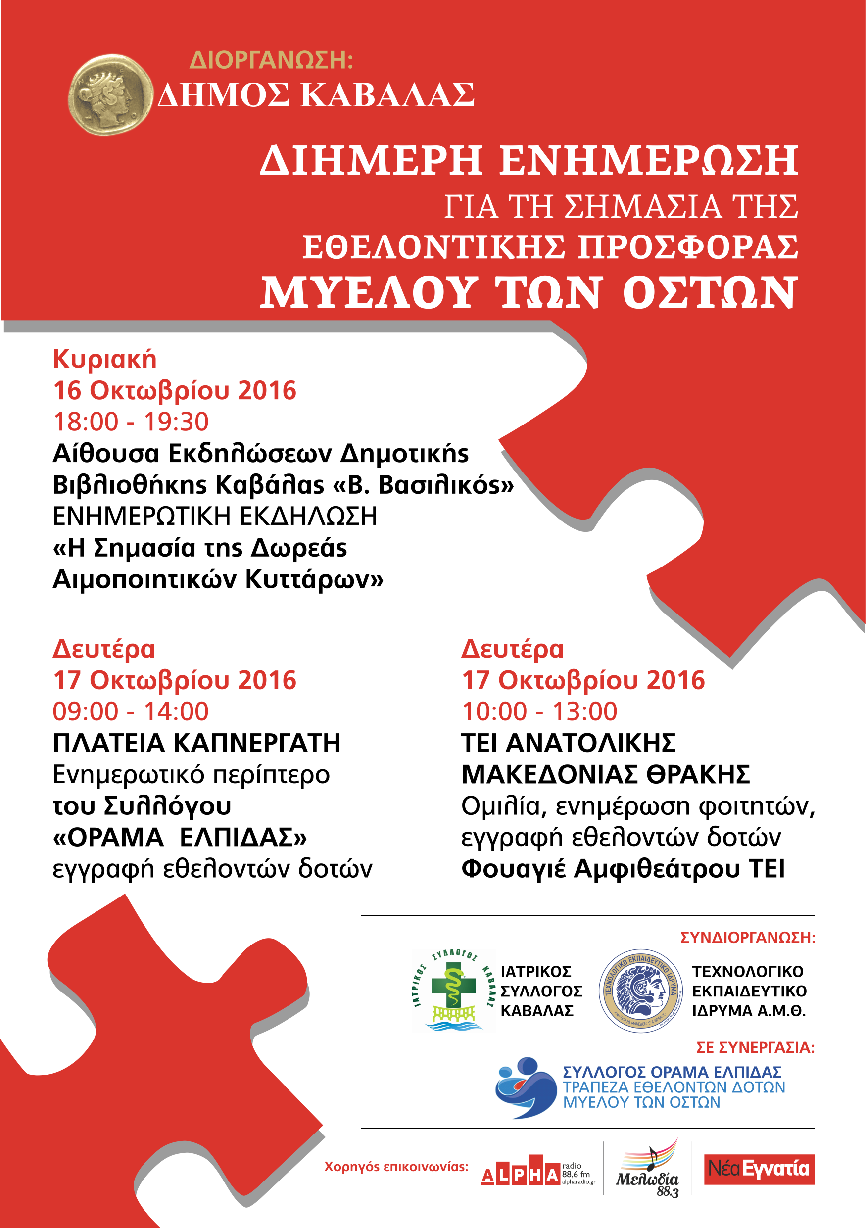 «Η Σημασία της Δωρεάς Αιμοποιητικών Κυττάρων» – Κυριακή 16 Οκτωβρίου 2016 και ώρα 18.00