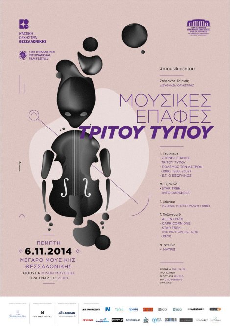 Μια συναυλία με τον τίτλο «Μουσικές Επαφές Τρίτου Τύπου», μια διοργάνωση της Κρατικής Ορχήστρας Θεσσαλονίκης σε συμπαραγωγή με το Μέγαρο Μουσικής Θεσσαλονίκης, η οποία πραγματοποιείται στο πλαίσιο του 55ου Φεστιβάλ Κινηματογράφου Θεσσαλονίκης, θα γίνει την Πέμπτη 6 Νοεμβρίου 2014, στο ΜΜΘ:
