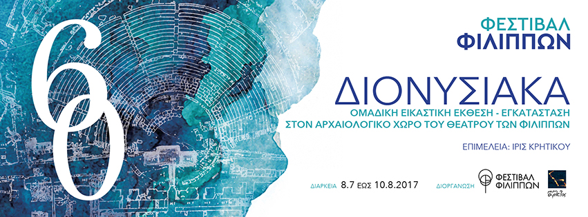 Το Φεστιβάλ Φιλίππων και η Μικρή άρκτος παρουσιάζουν την ομαδική εικαστική έκθεση – εγκατάσταση στο χώρο του αρχαίου θεάτρου των Φιλίππων με τίτλο «Διονυσιακά» σε επιμέλεια της Ίριδας Κρητικού, από το Σάββατο 8 Ιουλίου έως και την Πέμπτη 10 Αυγούστου στο πλαίσιο του 60ου Φεστιβάλ Φιλίππων.