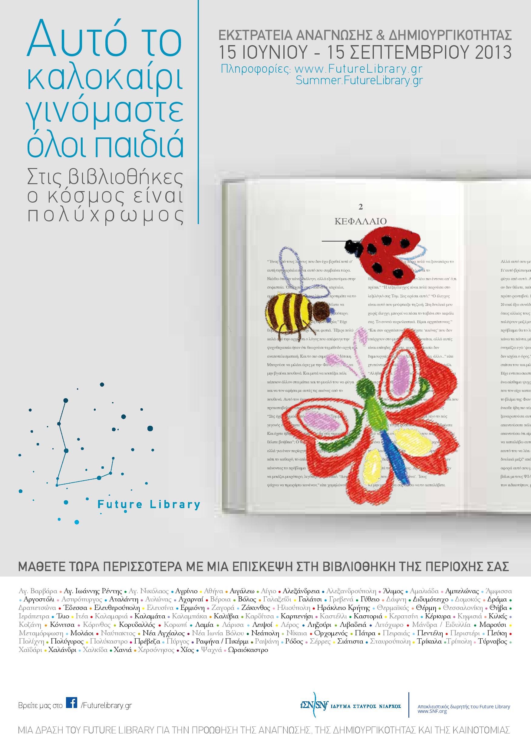Για συνολικότερη ενημέρωση για την καμπάνια, έτσι όπως διαμορφώνεται σε όλες τις δημόσιες και δημοτικές βιβλιοθήκες της χώρας, μπορείτε να επισκεφτείτε την ιστοσελίδα http://summer.futurelibrary.gr/.