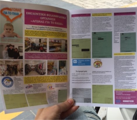 «Το Χαμόγελο του Παιδιού» ενημερώθηκε από υποστηρικτές του σε διάφορες πόλεις της Ελλάδας, τη Θεσσαλονίκη, τον Πύργο, τη Χίο, τη Λάρισα, την Κέρκυρα, σχετικά με εράνους σε καφετέριες ανά την Ελλάδα από πωλήτριες περιοδικών του συλλόγου «Αγώνας για το Παιδί», που υποτιθέμενα υποστηρίζει οργανώσεις με δράση για παιδιά. Συγκεκριμένα, αναφέρθηκε η περίπτωση γυναικών, οι οποίες ως πλανόδιες πωλήτριες περιοδικών, εκδίδοντας διάτρητη απόδειξη εκδοτικού οίκου βιβλίων, πραγματοποιούν σχετικές πωλήσεις, αναφέροντας ότι μέρος των πωλήσεων αυτών θα διατεθεί στον Οργανισμό «Το Χαμόγελο του Παιδιού». Προκειμένου να καλυφθούν και νομικά, έχουν προβεί, εν αγνοία μας, σε κατάθεση ποσού 200€ σε τραπεζικό λογαριασμό του Οργανισμού μας, η οποία σε καμία περίπτωση δεν αποτυπώνει το σύνολο του ποσού που έχουν εισπράξει πανελλαδικά, χρησιμοποιώντας «Το Χαμόγελο του Παιδιού», αναφέρει το σχετικό δελτίο Τύπου και συνεχίζει διαψεύδοντας κατηγορηματικά την οποιαδήποτε ανάμειξή του στη συγκεκριμένη ενέργεια, ενώ έχει προβεί στις ενδεδειγμένες νομικές πράξεις, μεταξύ των οποίων σε κατάθεση αναφοράς στην Εισαγγελία του Αρείου Πάγου και στον υπουργό Επικρατείας για την καταπολέμηση της διαφθοράς.