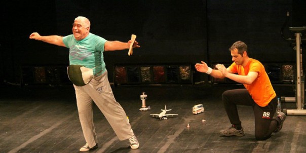 Ούτε και τώρα σκοπεύω να σας αφηγηθώ την πλοκή του «Ισορροπιστή Αεροσκαφών» σε σκηνοθετική επιμέλεια Θοδωρή Γκόνη. Προτίθεμαι να την κρατήσω ζηλόφθονα για τον εαυτό μου, ή να τη μοιραστώ με όσους διάβασαν το βιβλίο και είδαν την παράσταση. Η μόνη χάρη που θα σας κάνω, θα είναι να μεταφέρω την εντύπωσή μου από το ανέβασμα. Φανταστείτε λοιπόν ένα πληθωρικό Δημήτρη Πιατά να εκφράζεται με τη φωνή και το σώμα του, «οπτικοποιώντας» όσα έγραψε η πένα του Θόδωρου. Φανταστείτε έναν Παύλο Σταυρόπουλο να πλαισιώνει υποστηρικτικά τον κεντρικό ρόλο, προκαλώντας ηχηρούς γέλωτες ειδικά ως Σαρίτα, φορώντας μια μελαχρινή περούκα και άδοντας το ρεφραίν των Vaya Con Dios «Aie aie aie aie aie aie Puerto Rico…». Φανταστείτε τους έστω να αναπαριστούν ως ζεμπέκικο το άσμα της Ρένας Κουμνιώτη «Το λέγαν Άγια Κυριακή εκείνο το καΐκι…»! Όλα αυτά δε, φανταστείτε τα να εξελίσσονται σε πρώτο πλάνο, ενώ στο φόντο προβάλλεται κάποιο ντοκιμαντέρ με θέμα τους ελέφαντες!