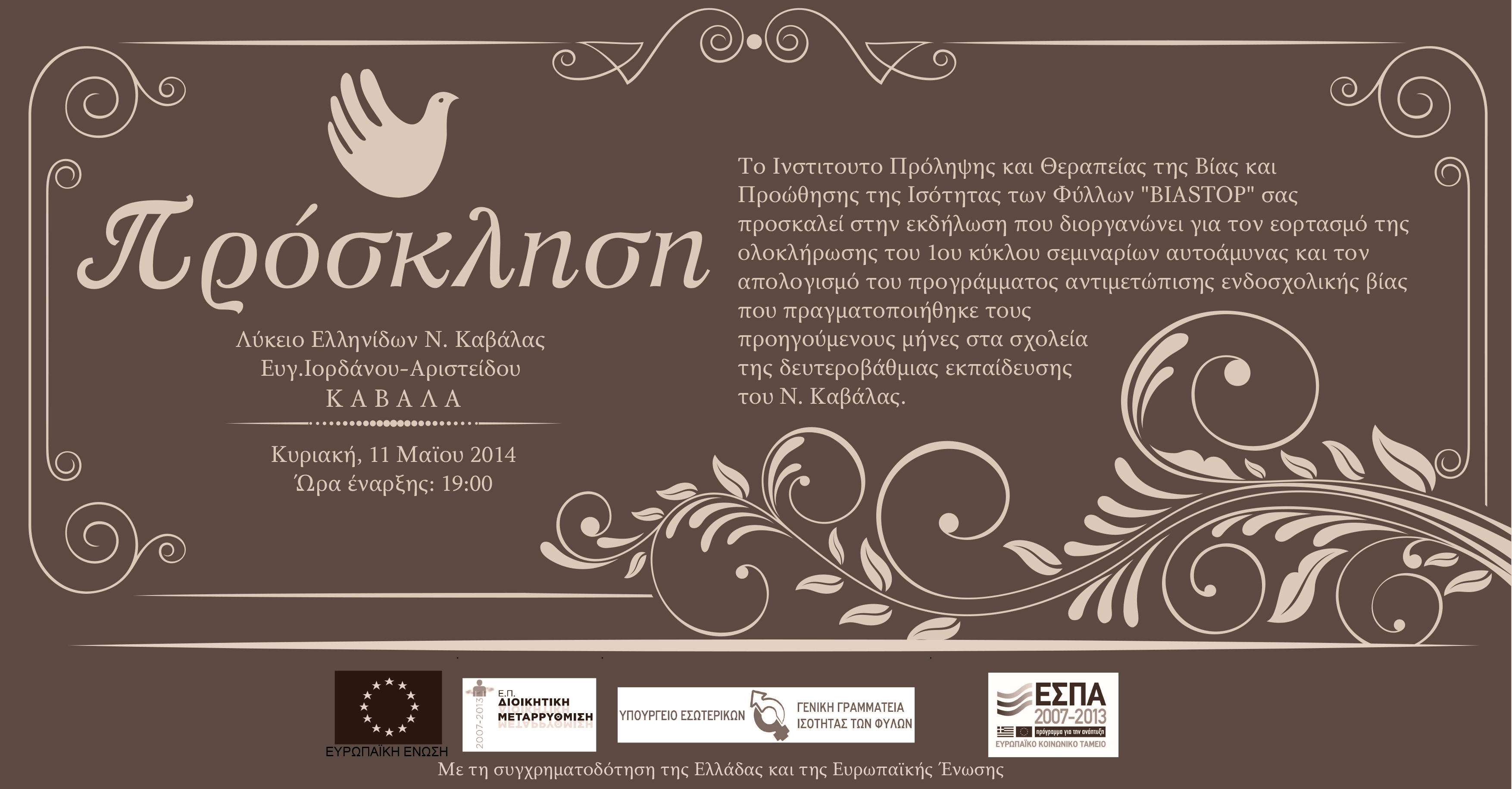 Πρόσκληση στην εκδήλωση του Ινστιτούτου Πρόληψης και Θεραπείας της Βίας και Προώθησης της Ισότητας των Φύλων “ΒΙΑ-ΣΤΟΠ”